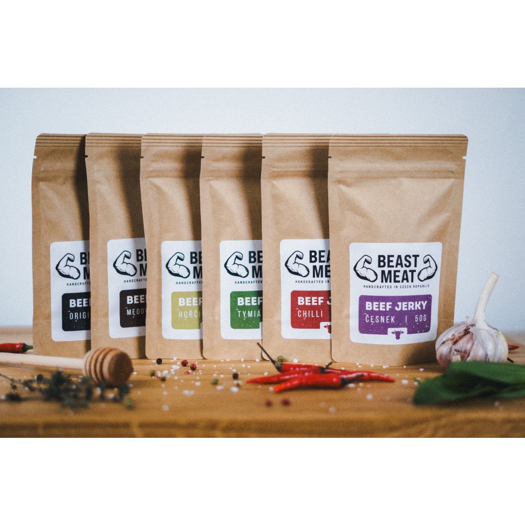 Nemůžeš se rozhodnout, kterou z příchutí ochutnáš nejdřív? Tak to seš tu na správný adrese! Tenhle pack Tě provede základníma příchutěma naší libový hověziny.