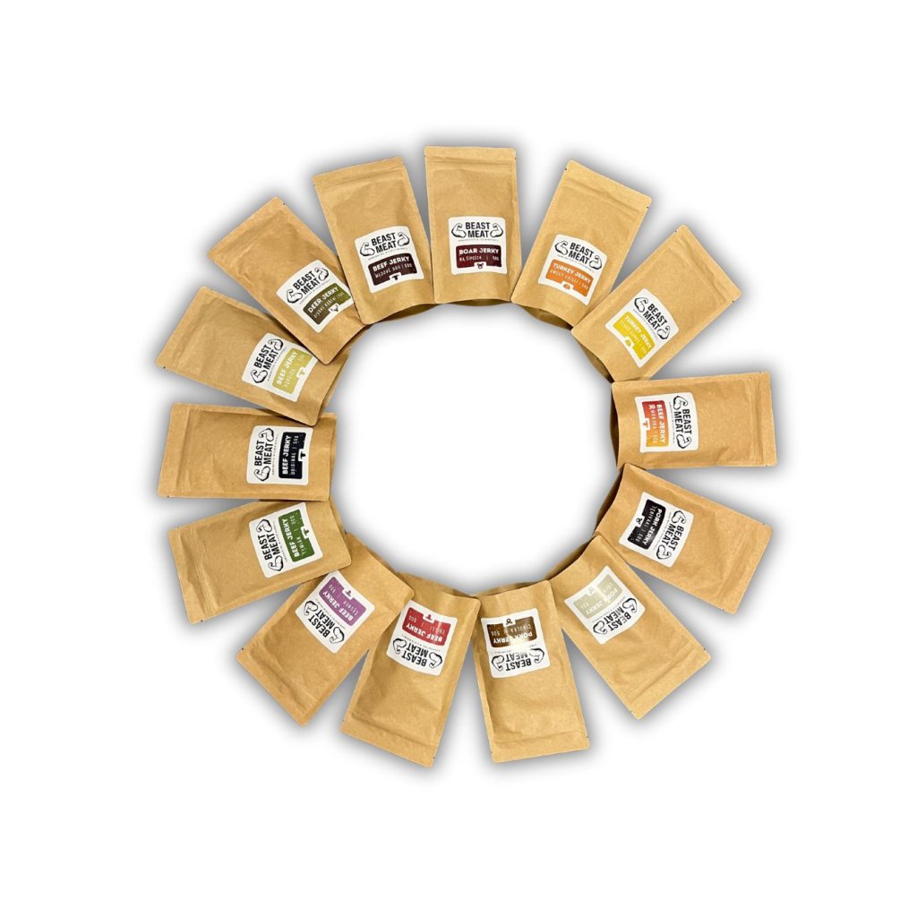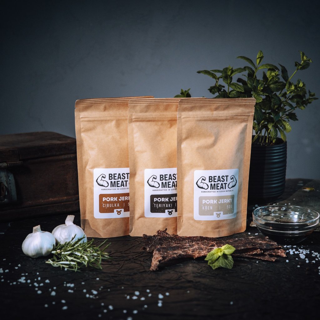 Český maso, kvalitní koření a hlavně šikovný ruce. Umělá inteligence se výrobu sušenýho masa ještě nestihla naučit a tak nezbývá nic jinýho než poctivě otočit každej kousek hoodněkrát v ruce. Výsledek ale stojí za to, krásný masitý kousky plný chuti ti řádně probuděj chuťový pohárky a než se naděješ, se zvědavostí se budeš dobejvat do další příchutě.